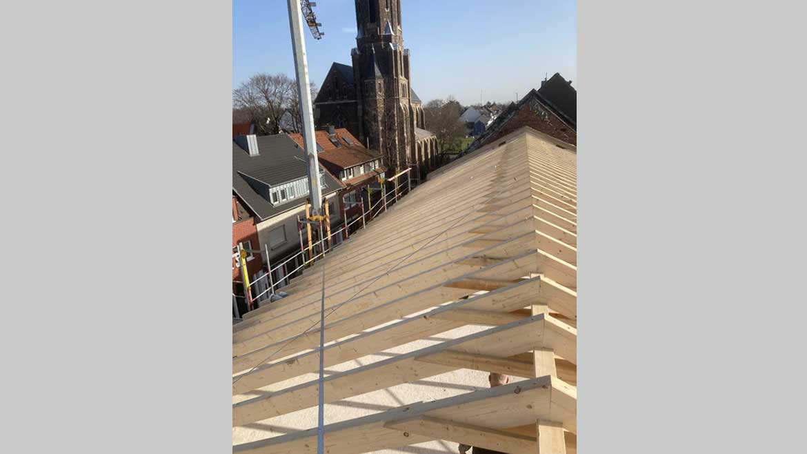 … und im Anschluss zugespannt und eingelattet. Im Juni dann Kita-Eröffnung,